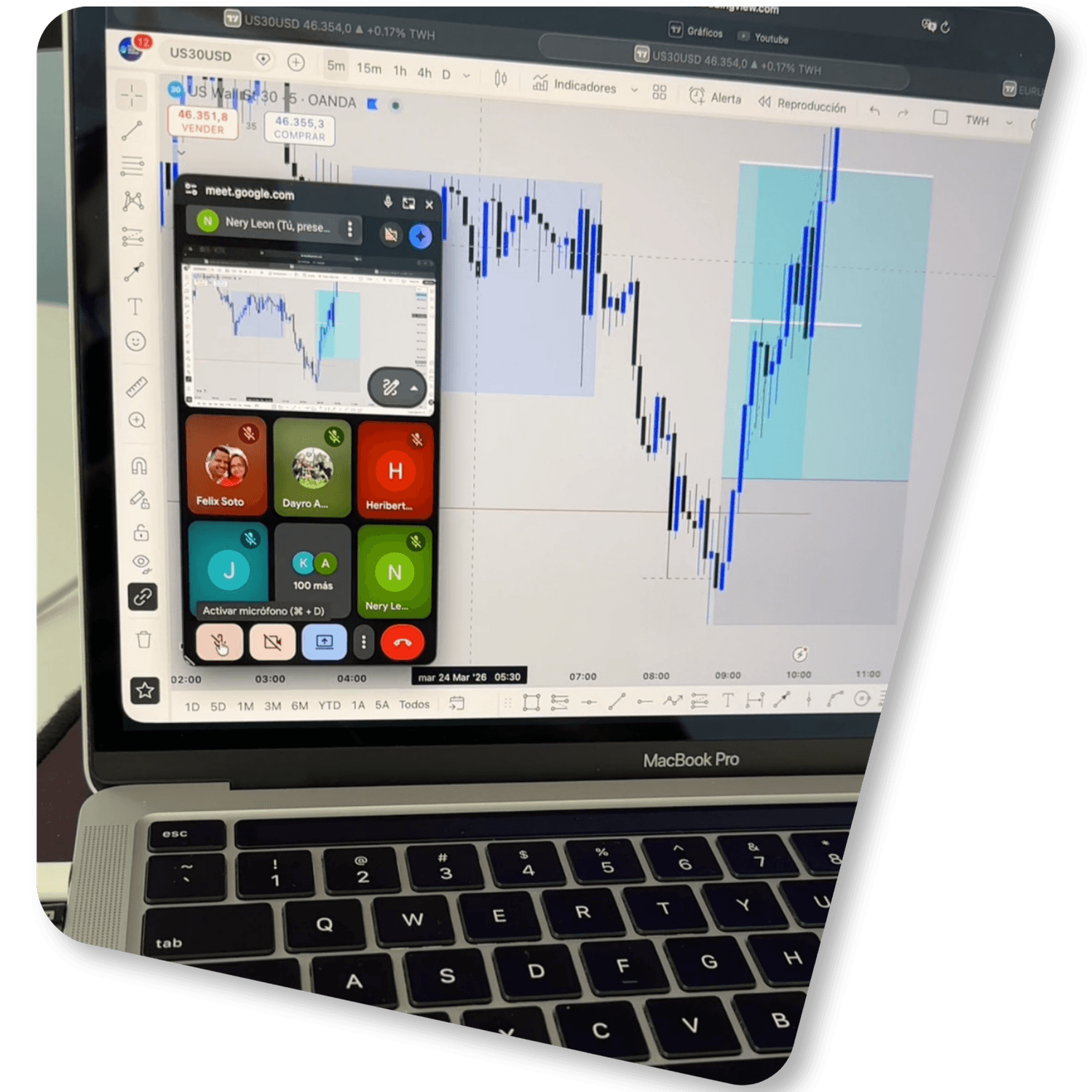. Conmigo Operas en vivo, donde te comparto el: Punto de entrada, nivel de SL, nivel TP, tipo de riesgo, altas o bajas probabilidades, tips y recomendaciones para sostener el trade.